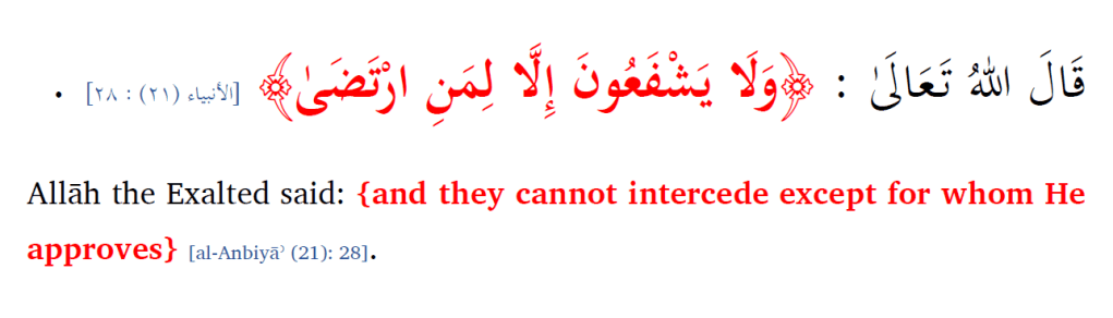 The Shaykh then discusses the concept of al-Shafāʿah (Intercession) and the conditions under which it is accepted by Allāh.