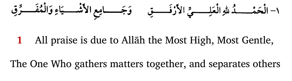 ((The One Who gathers matters together, and separates others)): Allāh has brought together and gathered things which are similar in one thing and He has also separated things which are different in another. As humans, we share, along with everything else in the universe, of being created by Allāh. So, we share in being created. However, Allāh separated and made a distinction between us in our shapes, sizes, being tall, short, black, white, handsome, ugly etc.